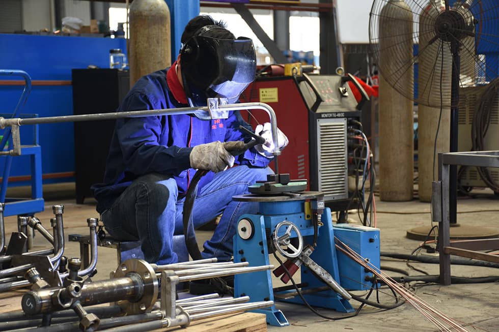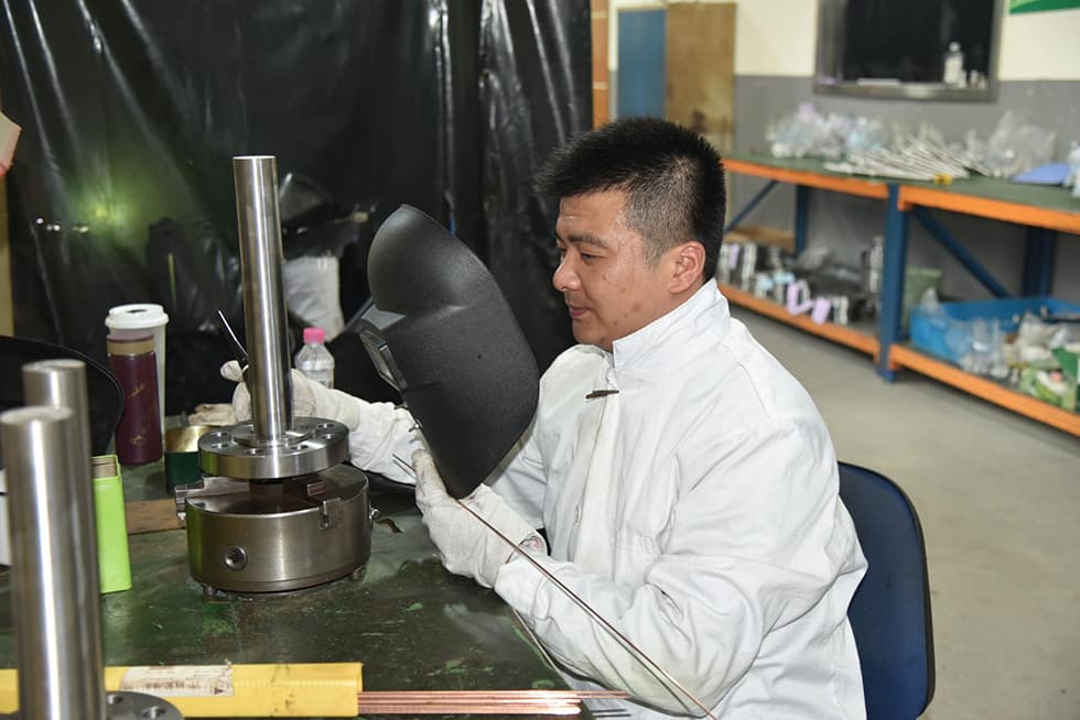 電氣制造部焊接車間工作的退役軍人職工