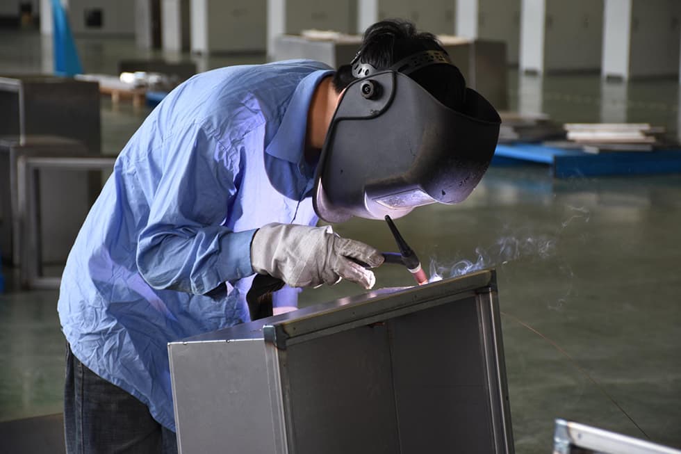 電器制造部焊接車間工作的退役軍人職工