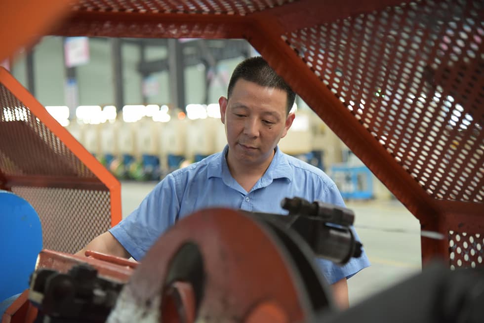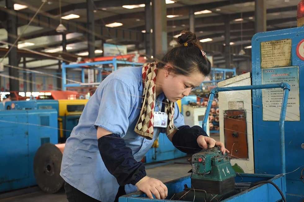 光電纜制造部拉絲車間工作的退役軍人職工
