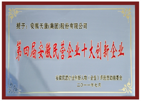 榮獲第四屆安徽民營企業(yè)十大創(chuàng)新企業(yè)